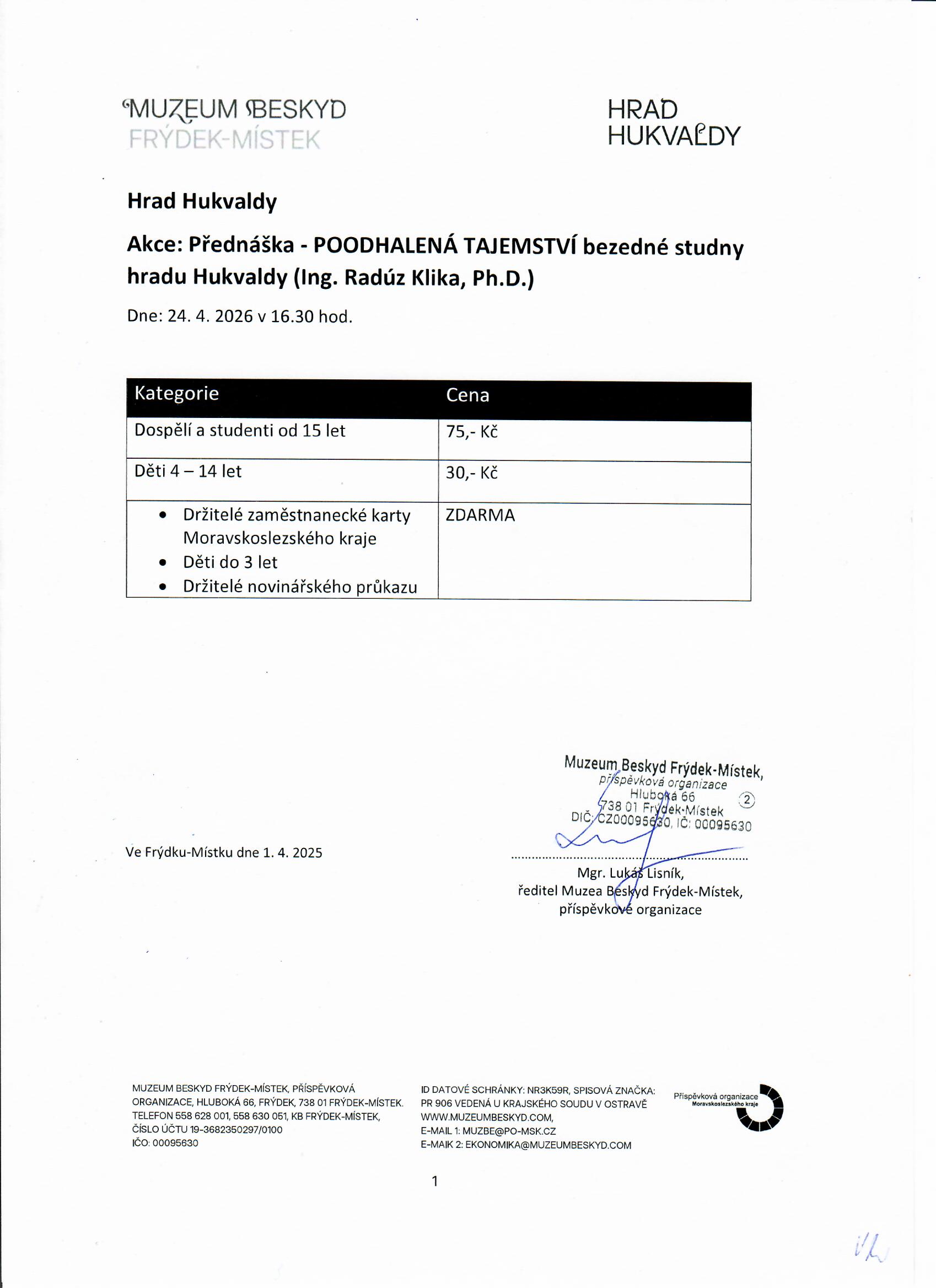 Ceník na tuto akci naleznete zde.Změna programu vyhrazena.